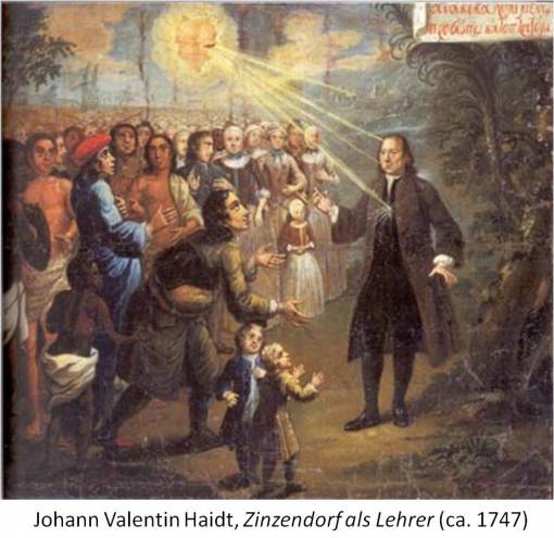 “Zinzendorf as Teacher of the Peoples” (Johann Valentin Haidt. Oil Painting. 1747.)